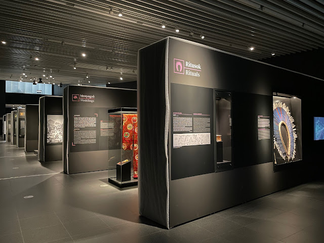 A Népraji Múzeumban tett sétám következő tárlata, már inkább hasonlított a megszokott elrendezéshez, a tárgy mellett felirat, honnan, mikor és miért. A kiállítás címe "Megérkeztünk", a múzeum 150 év után elfoglalta végleges helyét a Városliget kapujában. Bemutatja az első 19. század közepi gyűjtéseket és a legújabb szerzeményeket.